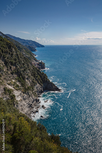 Beautiful seascape . View from the way to Vernazza village in Cinque Terre on the Italian Riviera