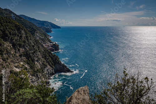 Beautiful seascape . View from the way to Vernazza village in Cinque Terre on the Italian Riviera