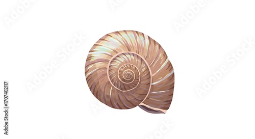 Beautiful Seashell with Isolated on White Background, Spiral Pattern, and Marine Life.