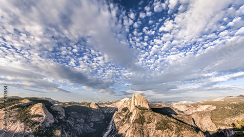 Beautiful sky over Half Dome mountain at sunset, Yosemite Nation