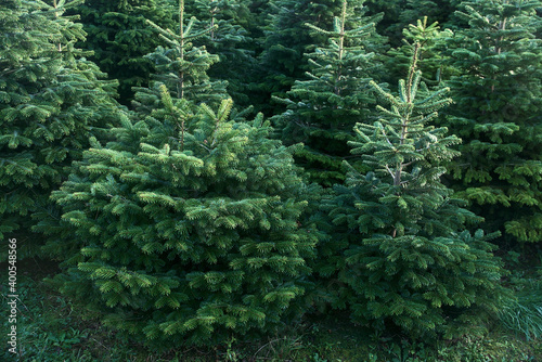 Beautiful small fir trees seen at Glencullen Christmas tree farm, County Dublin, Ireland