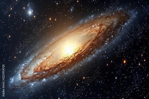 Beautiful spiral galaxy shining brightly in the cosmos with countless stars and cosmic dust