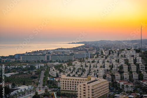 Beautiful sunset at the Konakli city near Alanya by the Mediterranean Sea, Turkey
