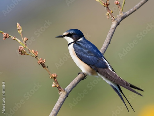 Beautiful Swallow Bird Resting on a Thin Branch in Natural Environment
