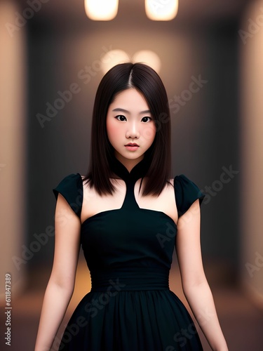 beautiful teenage asian woman posting for picture at the mall, generative art by A.I.