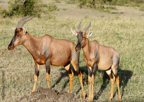 Beautiful topi antelopes in the Masai mara grassland