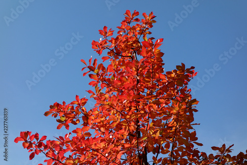 Beautiful tree. Red leaves. Autumn.