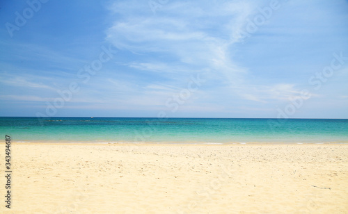 Beautiful tropical beach, white sand and turquoise water with blue sky.