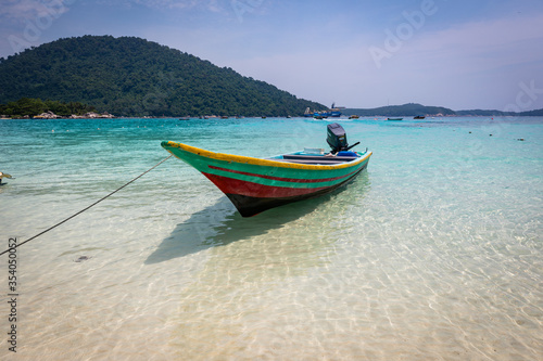 Beautiful tropical beach with white sand and turquoise water on Perhentian Island, Malaysia