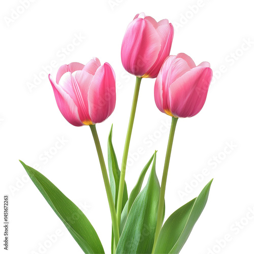 Beautiful tulips in vibrant pink colors against a bright transparent background at full bloom, Beautiful tulips isolated transparent background