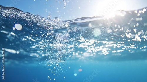 Beautiful underwater view capturing sunlight reflections and bubbles in a clear blue ocean : Generative AI