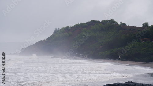 Beautiful view of empty Vagator beach in monsoon.