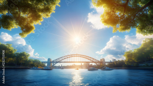 sydney, harbor, bridge, sunny, water, greenery, boat, skyline, cloud, nature, landscape, bright, city, travel, tour tourism, scenic, blue, sunlight, river, summer, peaceful, vibrant, architecture, urban, horizon, view, adventure, vacation, waterfront, calmness, environment, beauty, daylight, leisure, recreation, destination, iconic, australia, scenery, sky, natural, exploration, picturesque, serene, coastal