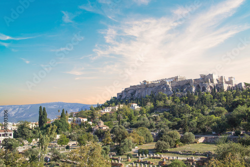 Beautiful view of the Acropolis and Erechtheion in Athens, Greece