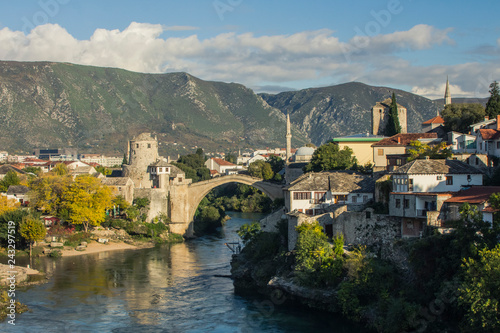 Beautiful view of the historic "Old Bridge" in Mostar. Bosnia and Herzegovina