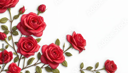 Beautiful vintage red rose flowers illustration high quality die-cut transparent background. Digitally enhanced, flat design, with white tones