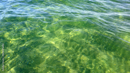 Beautiful wavy surface of clean and transparent turquoise sea water, natural background