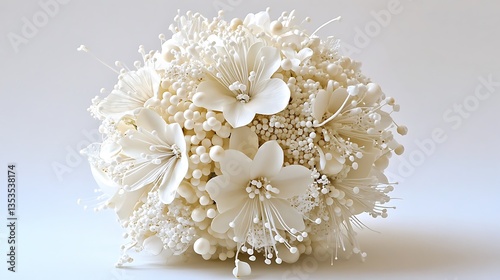 Beautiful wedding bouquet of white flowers on a white background.