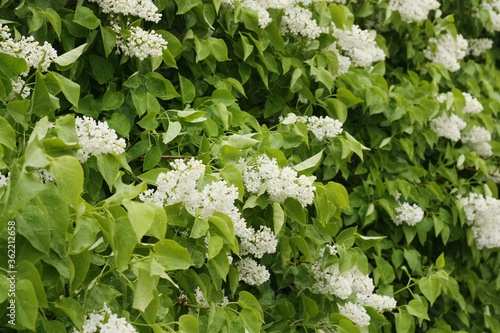 Beautiful white lilac in the summer garden