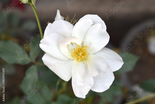 Beautiful white rose flower closeup in garden, A very beautiful white rose flower bloomed on the rose tree, Rose flower closeup, bloom flowers, Natural spring flower, Natural floral background,