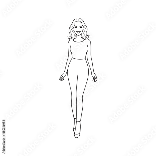Beautiful Woman Black and White Vector Image Illustration Fashion Girl Portrait Line Art Drawing
