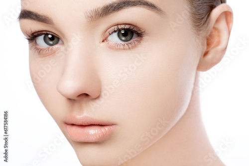 Beautiful woman girl natural makeup spa skin care portrait on white background
