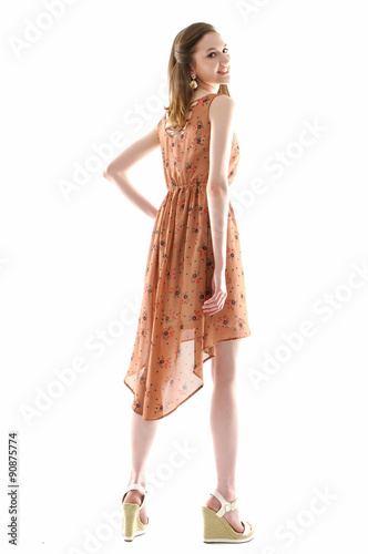 Beautiful Woman in an evening gown full length back