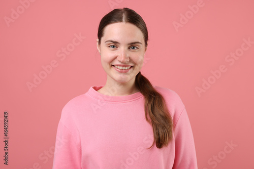 adult, background, beautiful, candid, care, carefree, casual attire, caucasian, cheerful, chuckle, colours, comic, cute, delight, emotion, enjoy, expression, feeling, female, fun, funny, giggle, girl, glad, happiness, happy, healthy, human, humor, joke, joy, laugh, laughing, lifestyle, model, optimistic, person, pink, pleased, portrait, positive, relax, rest, satisfied, sincere, smiling, studio, woman