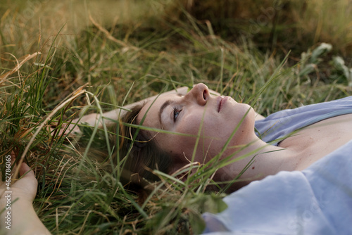 beautiful, woman, relaxing, grass, 1, people, adult, female, outdoors, day, beauty, lying, head shot, face, head, closeup, daydreaming, dreaming, natural, leisure, escapism, mid, plant, contemplation, resting, caucasian, lifestyle, nature, relaxation