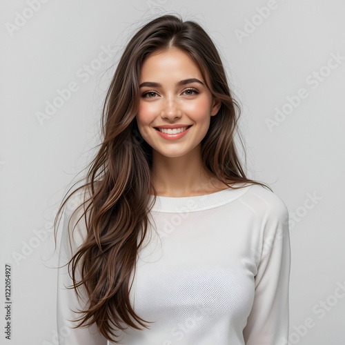 woman, beauty, hair, model, smile, face, smiling, person, people, brunette, fashion, lady, studio, 1, looking, closeup, happiness, eye, cute, dress, teenage, expression
