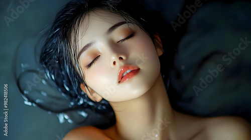 mesmerizing, vibrant, radiant, gorgeous, relaxed, model, innocent, elegant, calmness, serene, captivating, charming, allure, beautiful, calm, portrait, face, hypnotic, dazzling, enigmatic, aesthetic, dreamy, female, stunning, photo, eyes closed, angelic, aglow, fashion, photo, skin, beauty, hair, glowing, glamour, lip, breathtaking, mysterious, irresistable, natural beauty, art, soft, aethereal, woman, pose, peaceful, make-up, pure, sensual
