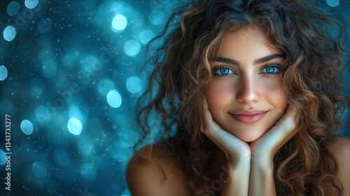 woman, girl, beauty, portrait, curly, hair, blue, eye, smile, happy, face, pretty, attractive, fashion, model, glamour, style, natural, make-up, skin, healthy, glowing, portraiture, photo, image, beautiful, gorgeous