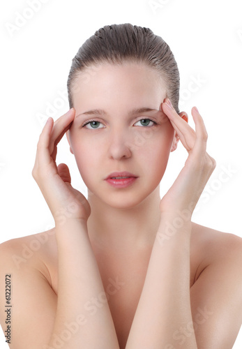 cephalalgia, woman, migraine, white, young, isolated, pain, background, stress, female, head, beautiful, sleepy, portrait, health, depression, stressed, depressed, ache, caucasian, girl, hair, fatigue, sad, problem, beauty, person, face, hand, lady, worry, concept, attractive, 1, expression, lifestyle, elegant, unhappy, pretty, care, hand, temple, forehead, suffering, medicine, cycle, teenage, clean, well-being, fever