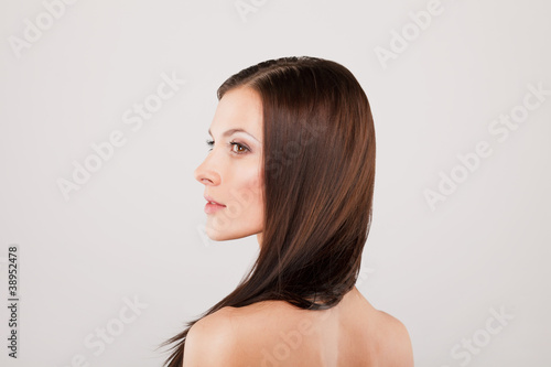 20s, adult, attractive, background, beautiful, beauty, body, bodycare, brown, calm, care, caucasian, clean, clear, closeup, cosmetic, cute, face, female, fresh, freshness, girl, hair, health, healthy, naked, 1, portrait, pretty, profile, serene, skin, skincare, smile, studio, vertical, white, woman, young