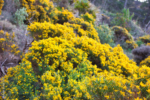 beautiful yellow flowers in the mountain in the middle of the nature