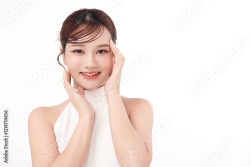 Beautiful young asian woman with clean fresh skin on white background, Face care, Facial treatment, Cosmetology, beauty and spa, Asian women portrait.