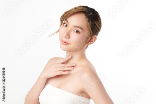 Beautiful young asian woman with clean fresh skin on white background, Face care, Facial treatment, Cosmetology, beauty and spa, Asian women portrait.