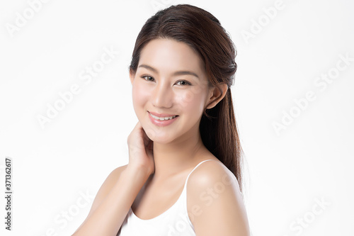 Beautiful Young asian Woman with Clean Fresh Skin, on white background, Face care, Facial treatment, Cosmetology, beauty and spa, Asian women portrait