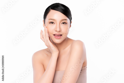 Beautiful young asian woman with clean fresh skin on white background, Face care, Facial treatment, Cosmetology, beauty and spa, Asian women portrait
