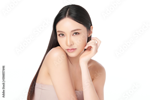 Beautiful young asian woman with clean fresh skin on white background, Face care, Facial treatment, Cosmetology, beauty and spa, Asian women portrait