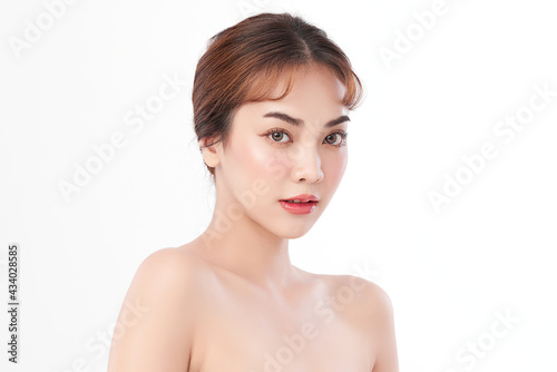 Beautiful young asian woman with clean fresh skin on white background, Face care, Facial treatment, Cosmetology, beauty and spa, Asian women portrait