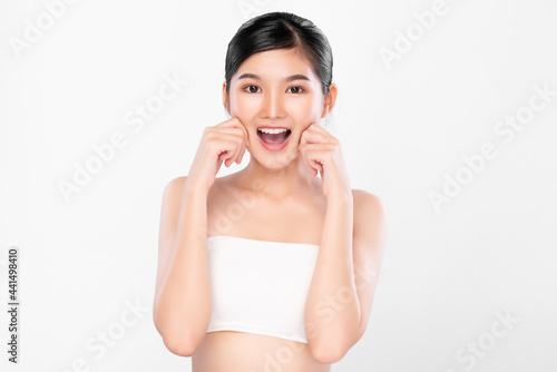 Beautiful young asian woman with clean fresh skin on white background, Face care, Facial treatment, Cosmetology, beauty and spa, Asian women portrait.
