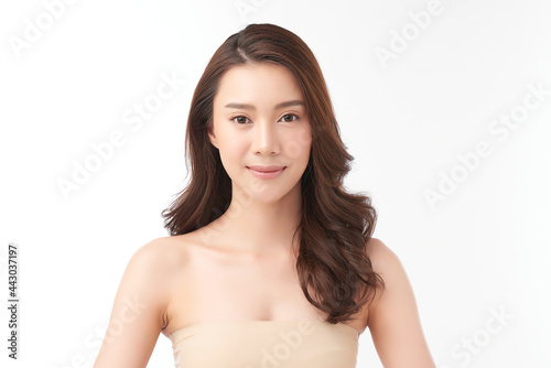 Beautiful young asian woman with clean fresh skin on white background, Face care, Facial treatment, Cosmetology, beauty and spa, Asian women portrait.