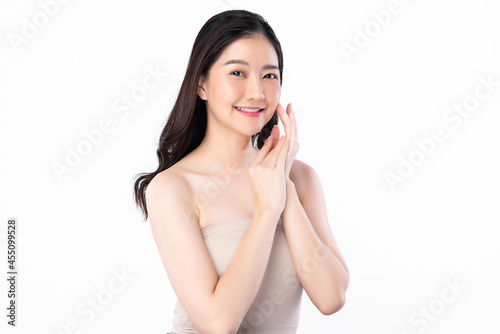 Beautiful young asian woman with clean fresh skin on white background, Face care, Facial treatment, Cosmetology, beauty and spa, Asian women portrait.