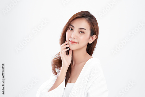 Beautiful young asian woman with clean fresh skin on white background, Face care, Facial treatment, Cosmetology, beauty and spa, Asian women portrait.