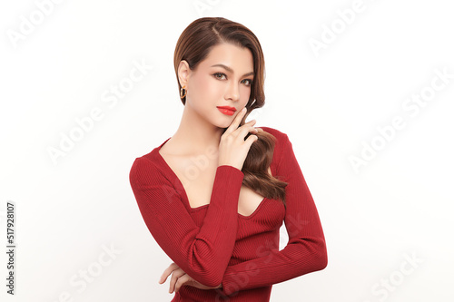 Beautiful young asian woman with clean fresh skin on white background, Face care, Facial treatment, Cosmetology, beauty and spa, Asian women portrait.
