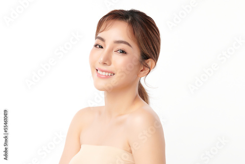 Beautiful young asian woman with clean fresh skin on white background, Face care, Facial treatment, Cosmetology, beauty and spa, Asian women portrait.