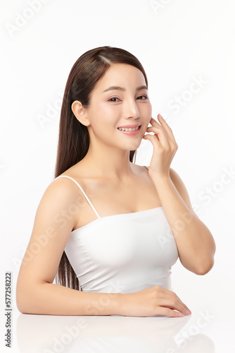 Beautiful young asian woman with clean fresh skin on white background, Face care, Facial treatment, Cosmetology, beauty and spa, Asian women portrait.