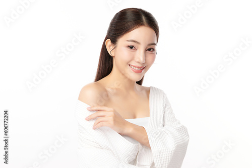 Beautiful young asian woman with clean fresh skin on white background, Face care, Facial treatment, Cosmetology, beauty and spa, Asian women portrait.
