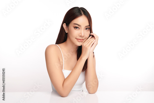 Beautiful young asian woman with clean fresh skin on white background, Face care, Facial treatment, Cosmetology, beauty and spa, Asian women portrait.